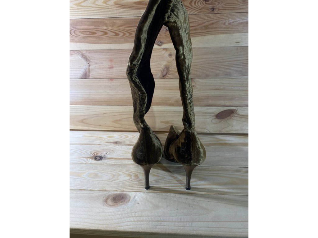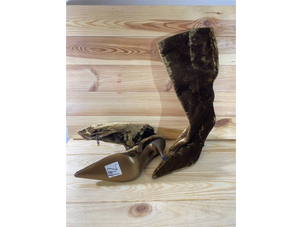 Dámske hnedé zamatové čižmy s opätkom
